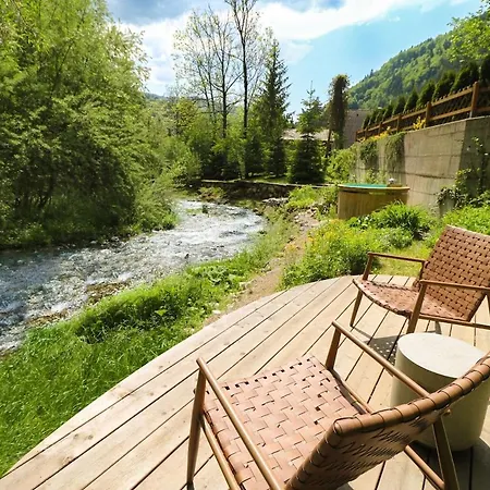 Вилла Designer Riverfront Cottage с видом на сад предлагает 1 спальню. На этой вилле есть терраса.